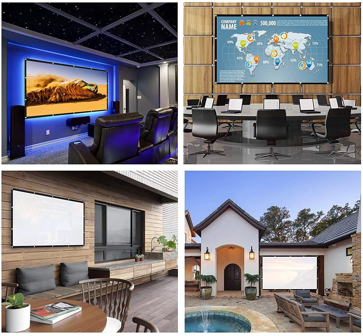 - Wide Application,This projector screen support double sided projection.It is an ideal choice for home theater, outdoor movie, football,school classroom for education, conference room presentation, public dispplay, outdoor entertainment, etc.