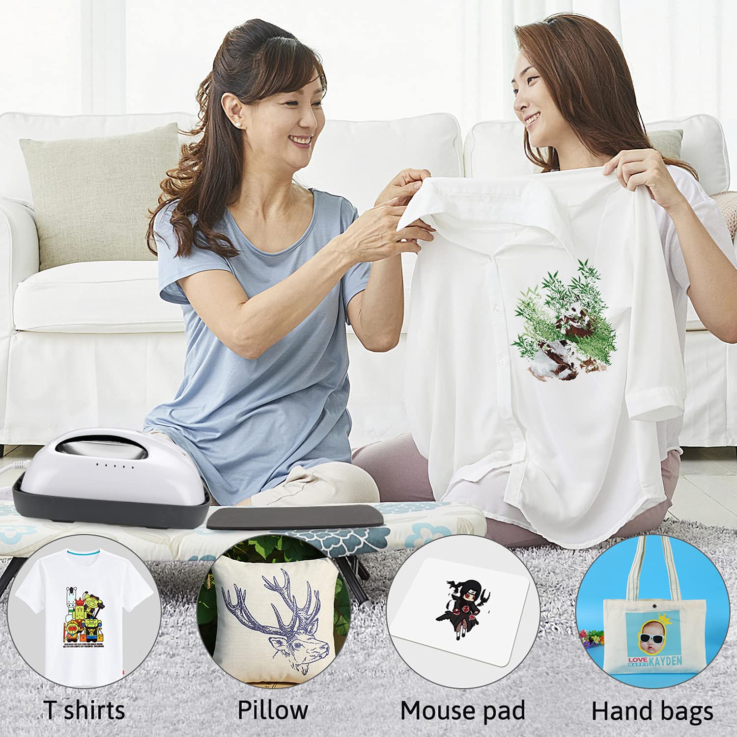 - 【Suitable Size】This 12"x10" machine can meet your multiple printing needs on multiple targets, such as T-shirts, tote bags, mouse pads, pillows, puzzles. Transfer Vinyl Backing: Glitter, Foil, Hologram, Mosaic, Fusible Fabric, etc