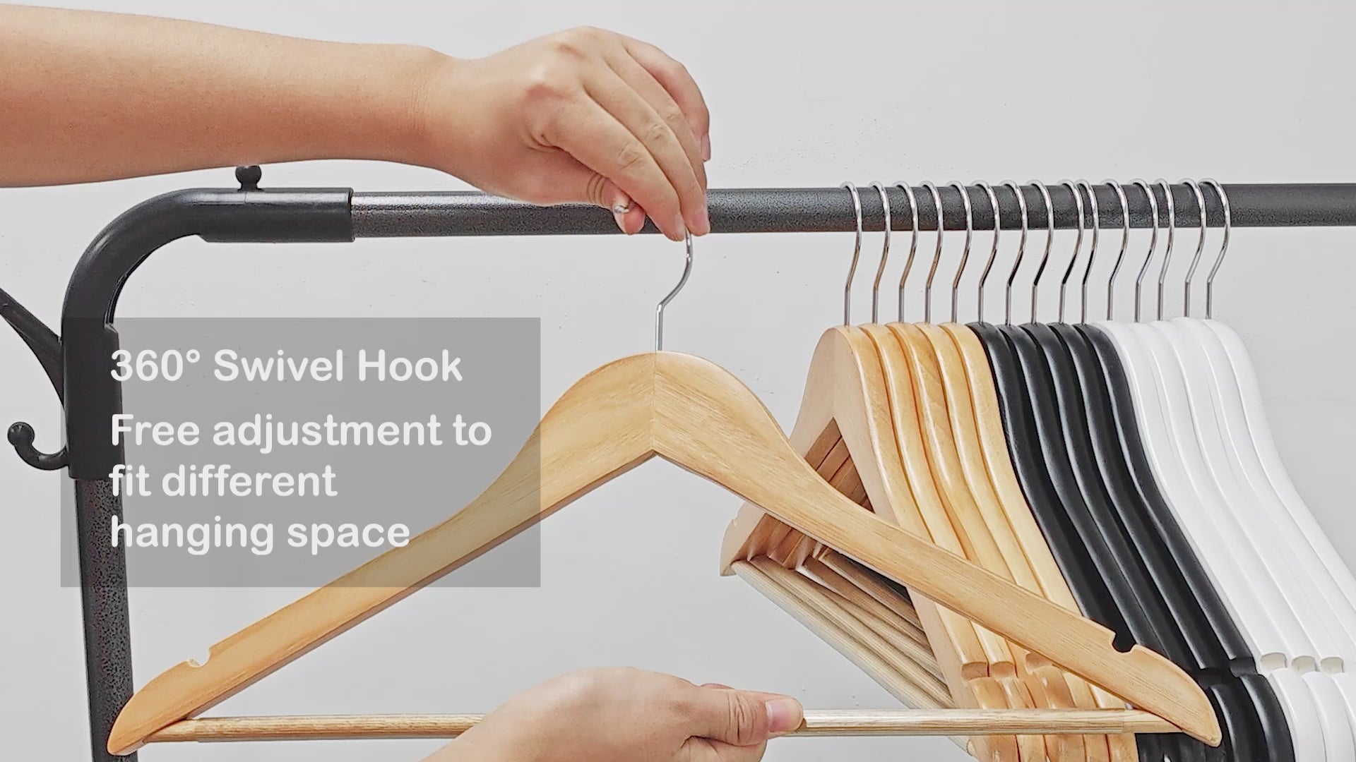 Our GRANDMA SHARK 20-Pack Wooden Coat Hangers provide a strong hold for your garments with its non-slip design and 360° hook. Each hanger is hand-crafted from natural wood to ensure quality and strength, allowing you to confidently hang a variety of garments.