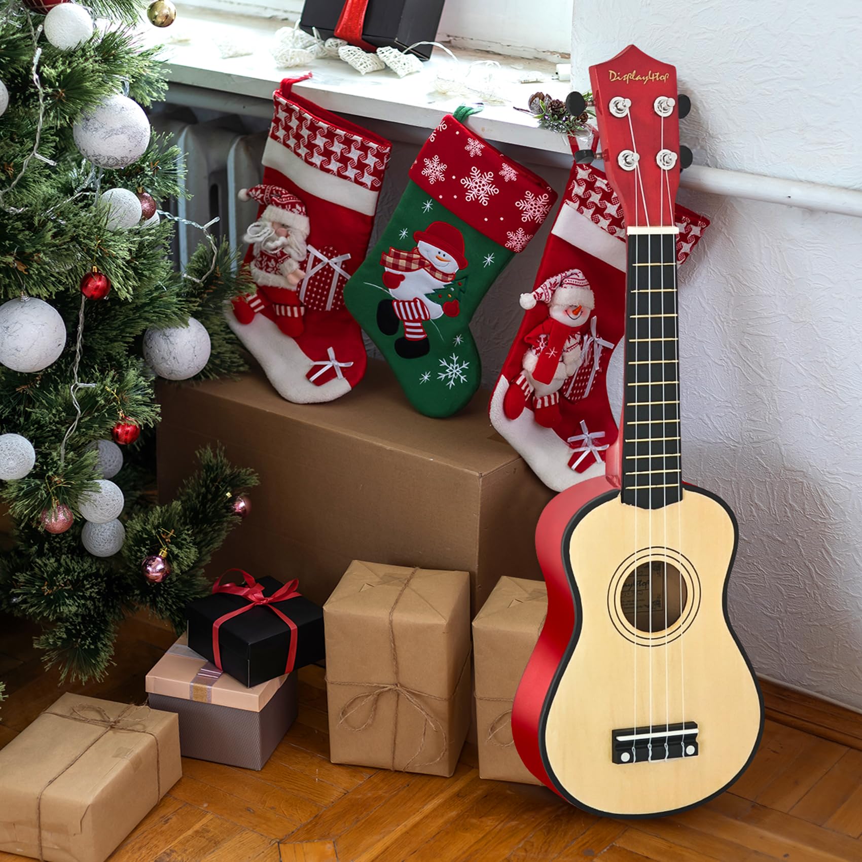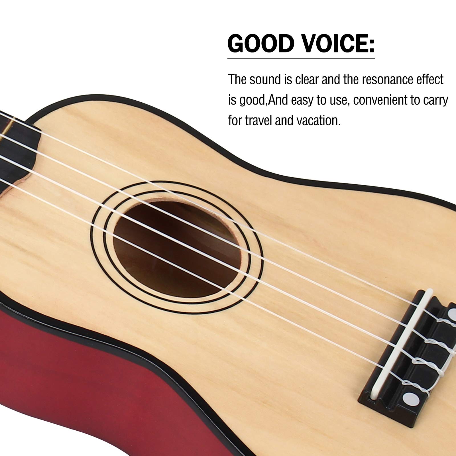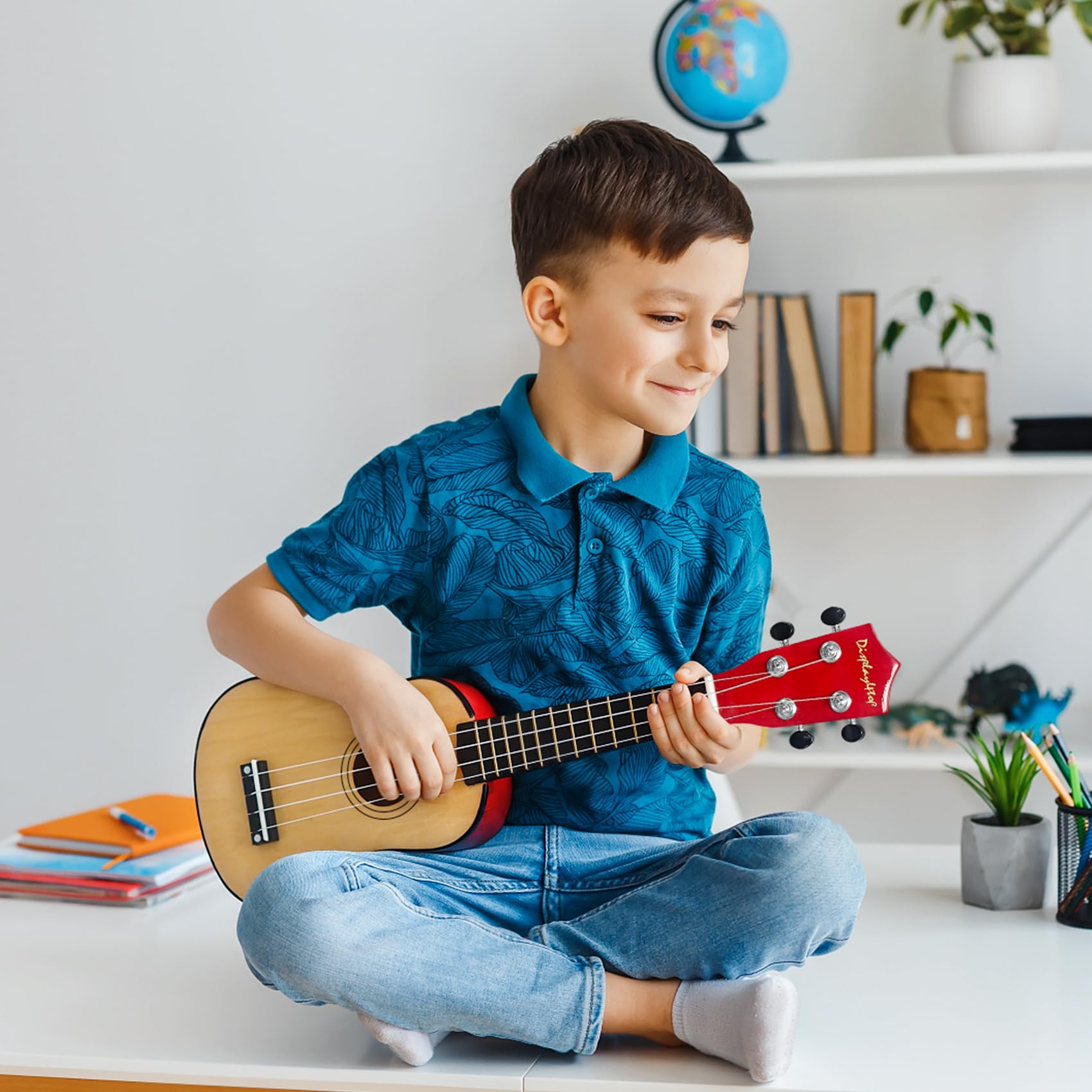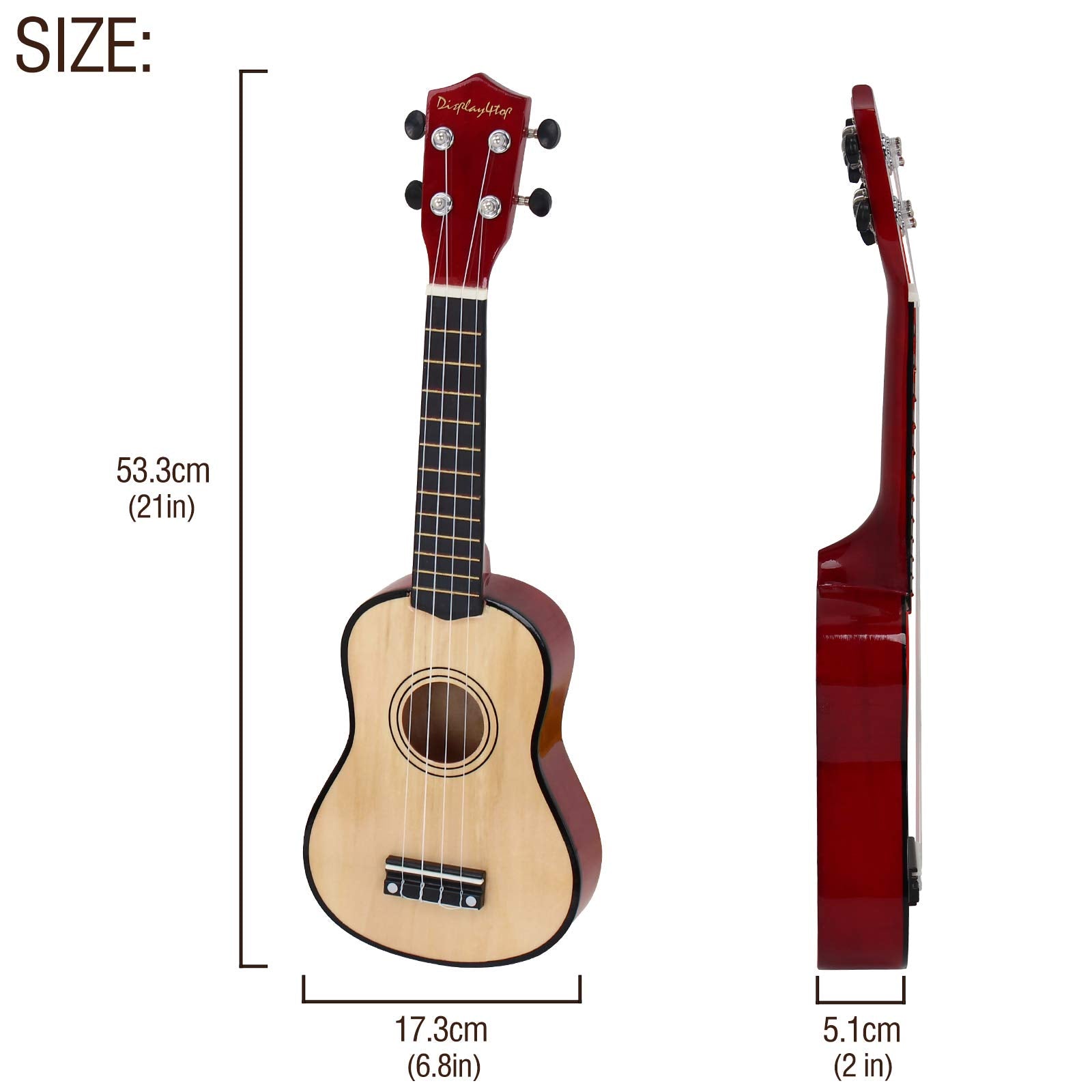 - ♪ ♪ Premium Kids Ukeleles - The 21 inch soprano ukulele is made of superior-quality materials which creates clear, crisp and melodious sound.The sturdy construct and smooth touch allow you roll over the frets freely on the nylon strings while playing.