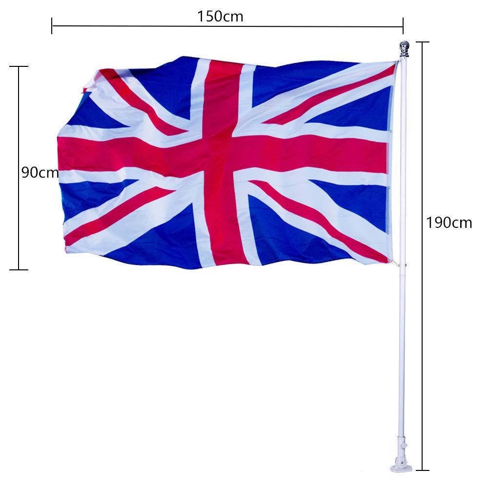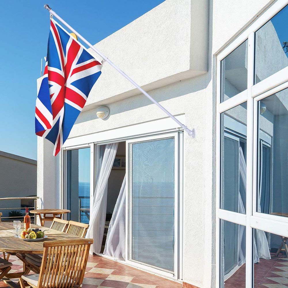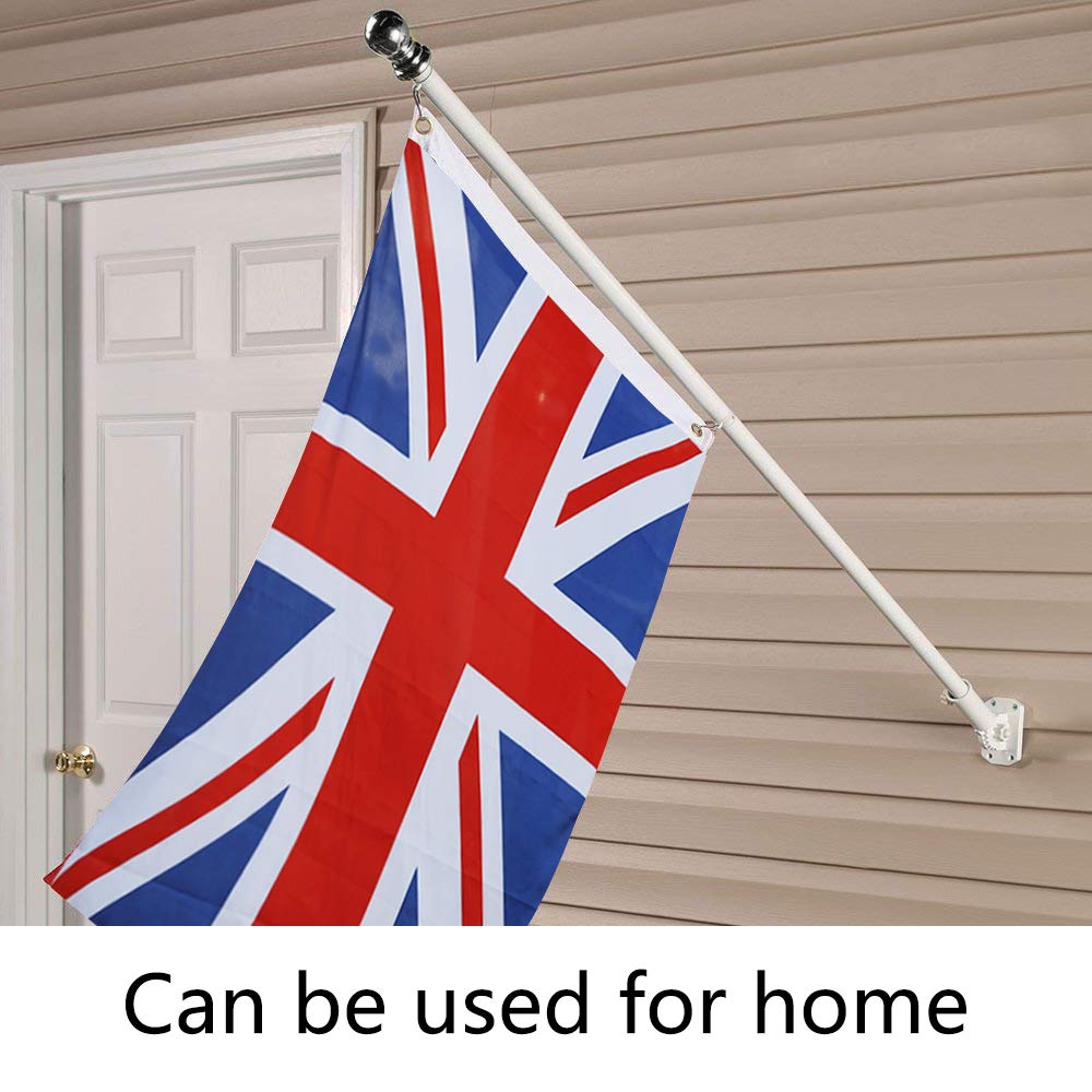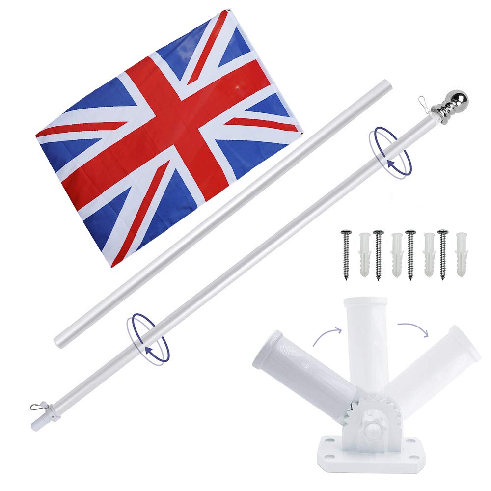 6ft Aluminium Flag Pole Kit With Adjustable 180 Degree Wall Bracket + 1PC Flag (British flag)