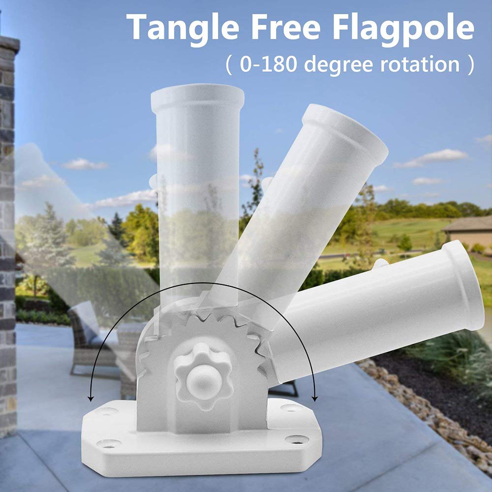 - Flagpole can be adjusted within a 180-degree range to perfectly display your flag at best advantage. At either angle, your flag looks majestic mounted in front of your house as a constant reminder of what we stand for.