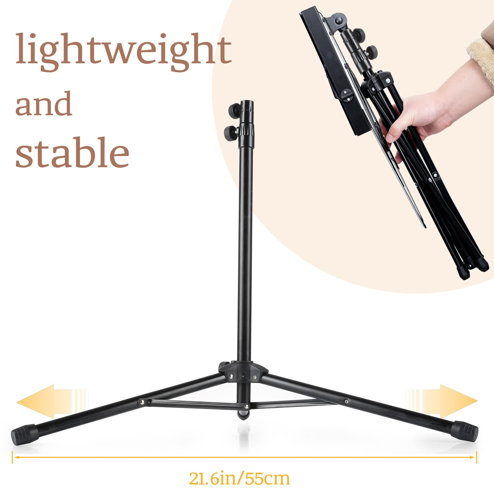 - ♬♬LIGHTWEIGHT AND PORTABLE - The sturdy metal tripod legs extend farther outwards for a steadier footing, which designed with anti-slip rubber caps on the foot for extra sturdiness. Easy assembly and set up.The leg assembly adjusts to tight spaces and folds flat for storage.Light weight and easily portable. Comes with carry bag,After your performance, fold it up and store in your included carrying bag. Packed in seconds.