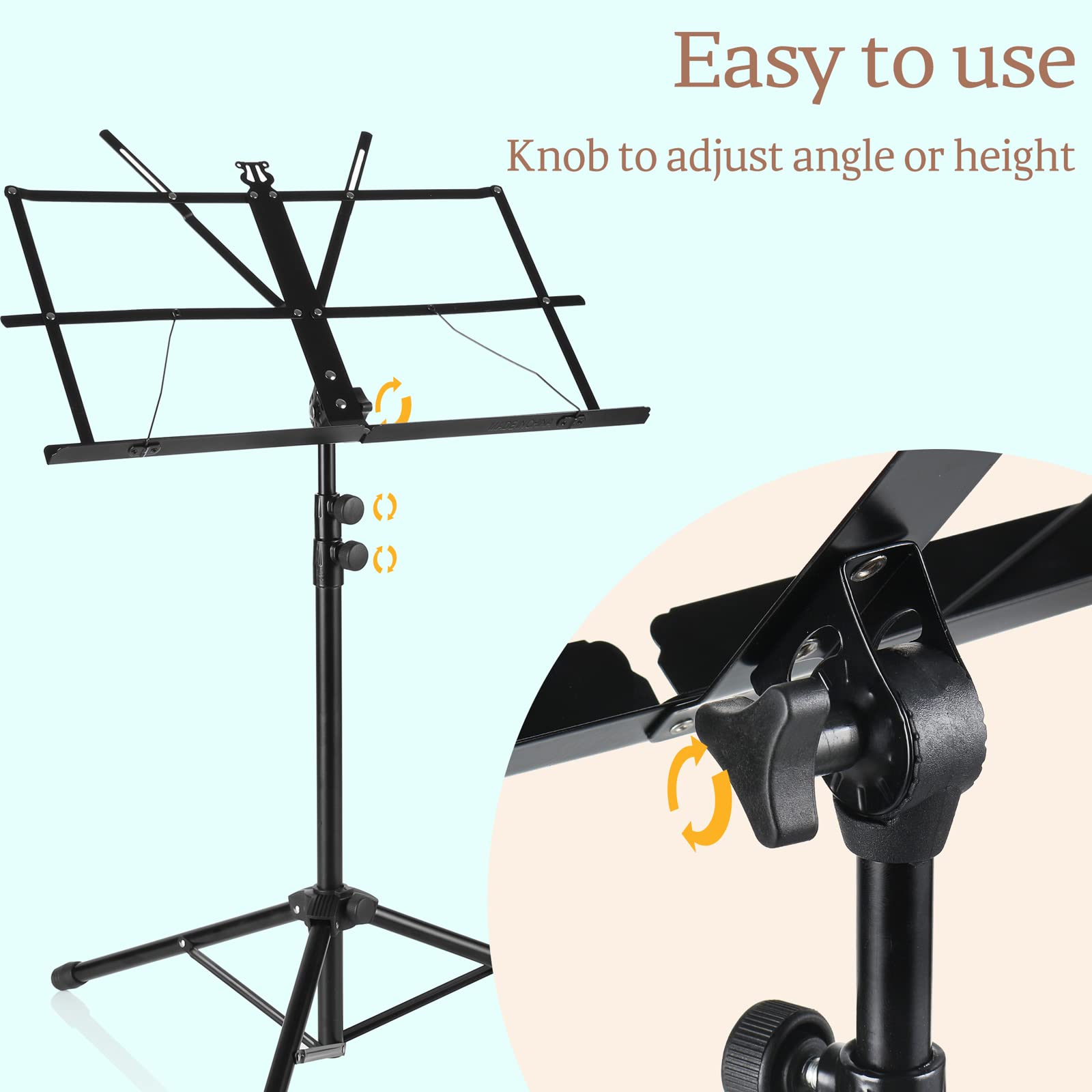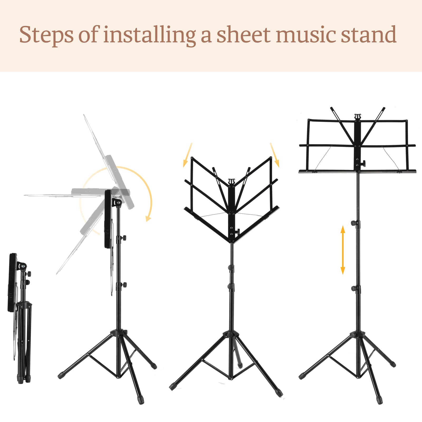 - ♬♬100% SATISFIED - We build this music stand with our respectful heart. A complete set of equipment come with the stand,great for school, orchestras, choirs, church band and more.Great customer service responses in 24 hours.if you have any questions, please feel free to contact us.