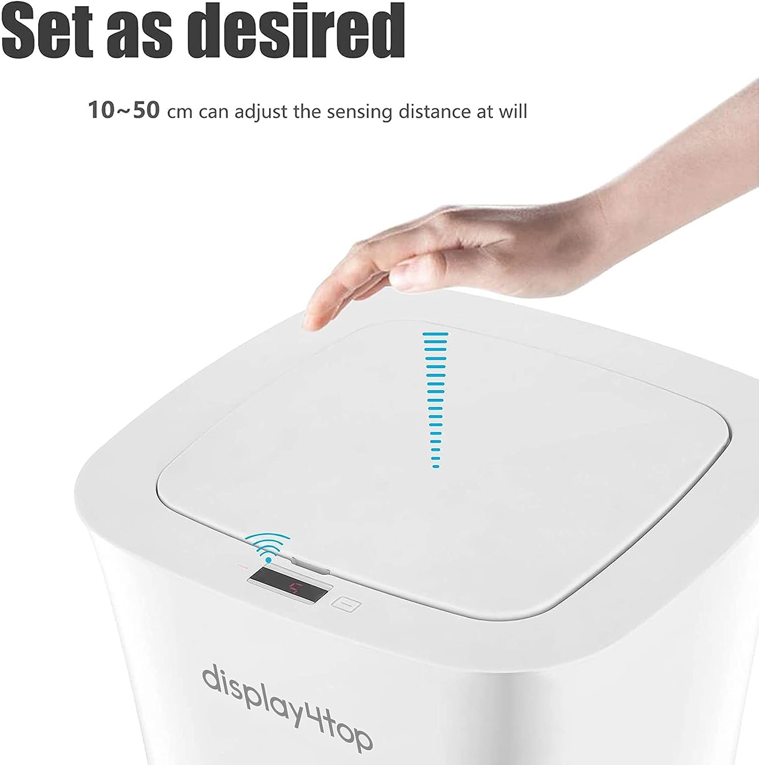- This product uses the principle of infrared ray induction to control the automatic openingand closing of the bucket cover. When hand or object enters the induction area, the bucket cover will automatically open. After the user throws the waste into the bucket, the bucket cover will automatically close again.