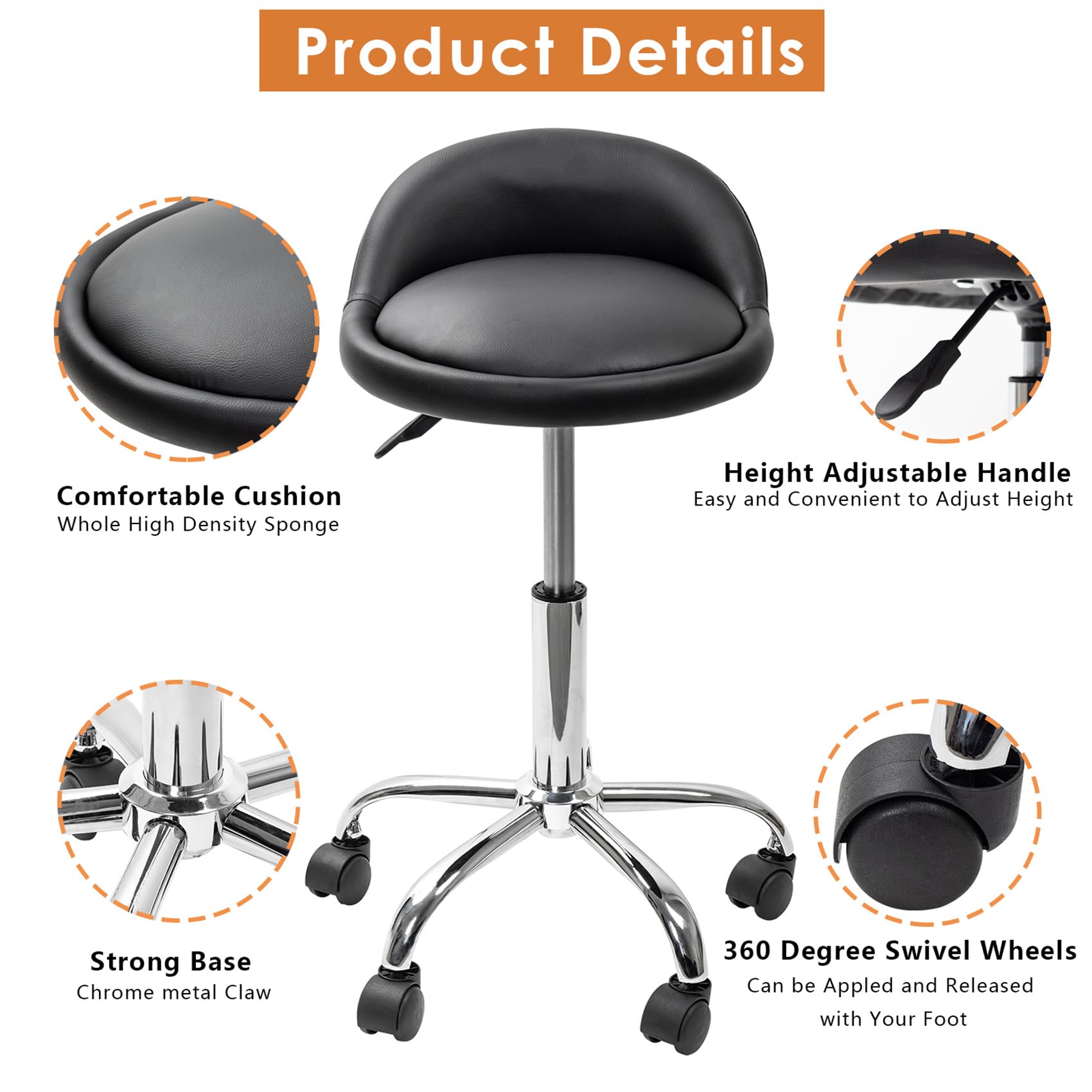 Black Adjustable Swivel Rolling Cushion Tattoo Massage Hydraulic Salon Stool with Back,5 Wheels