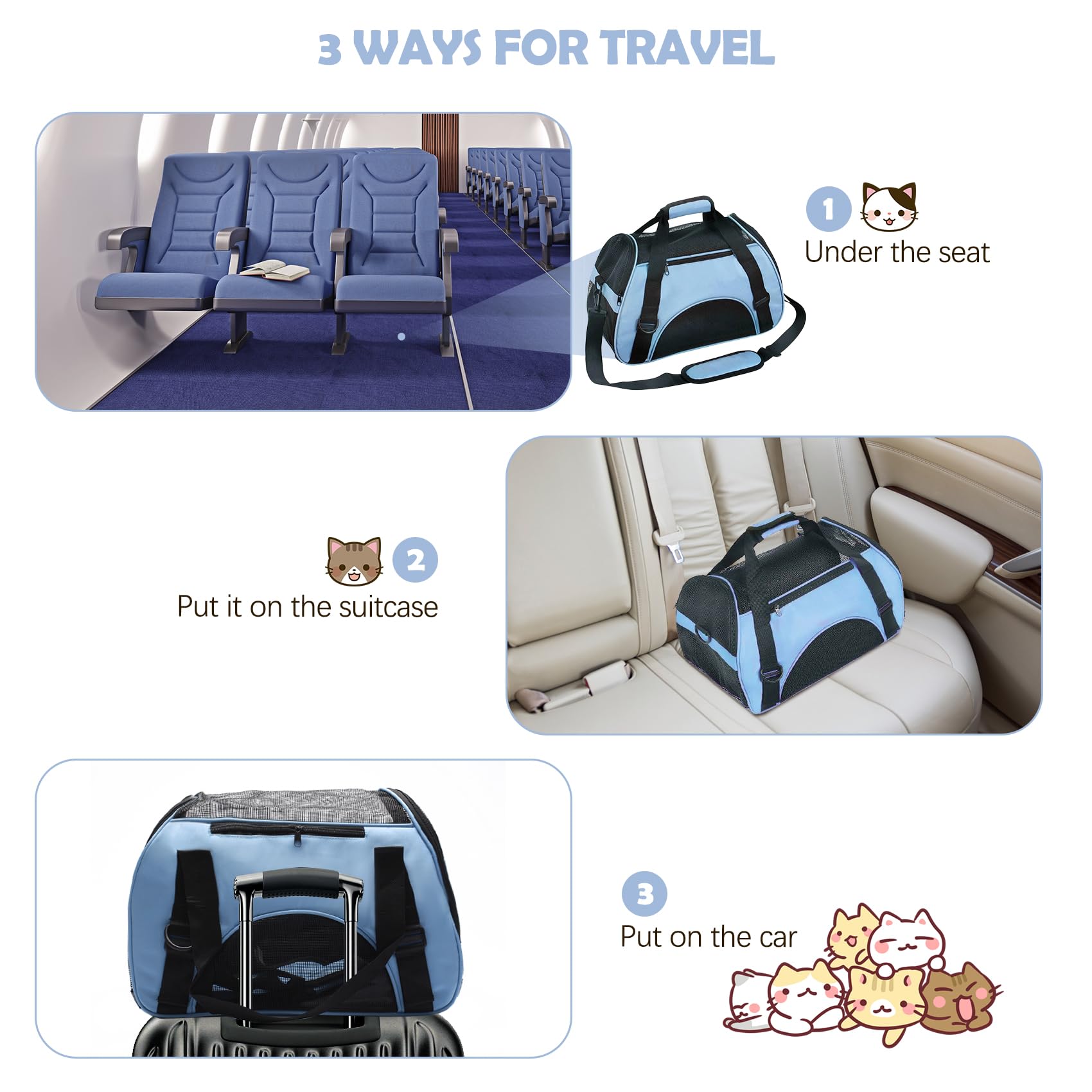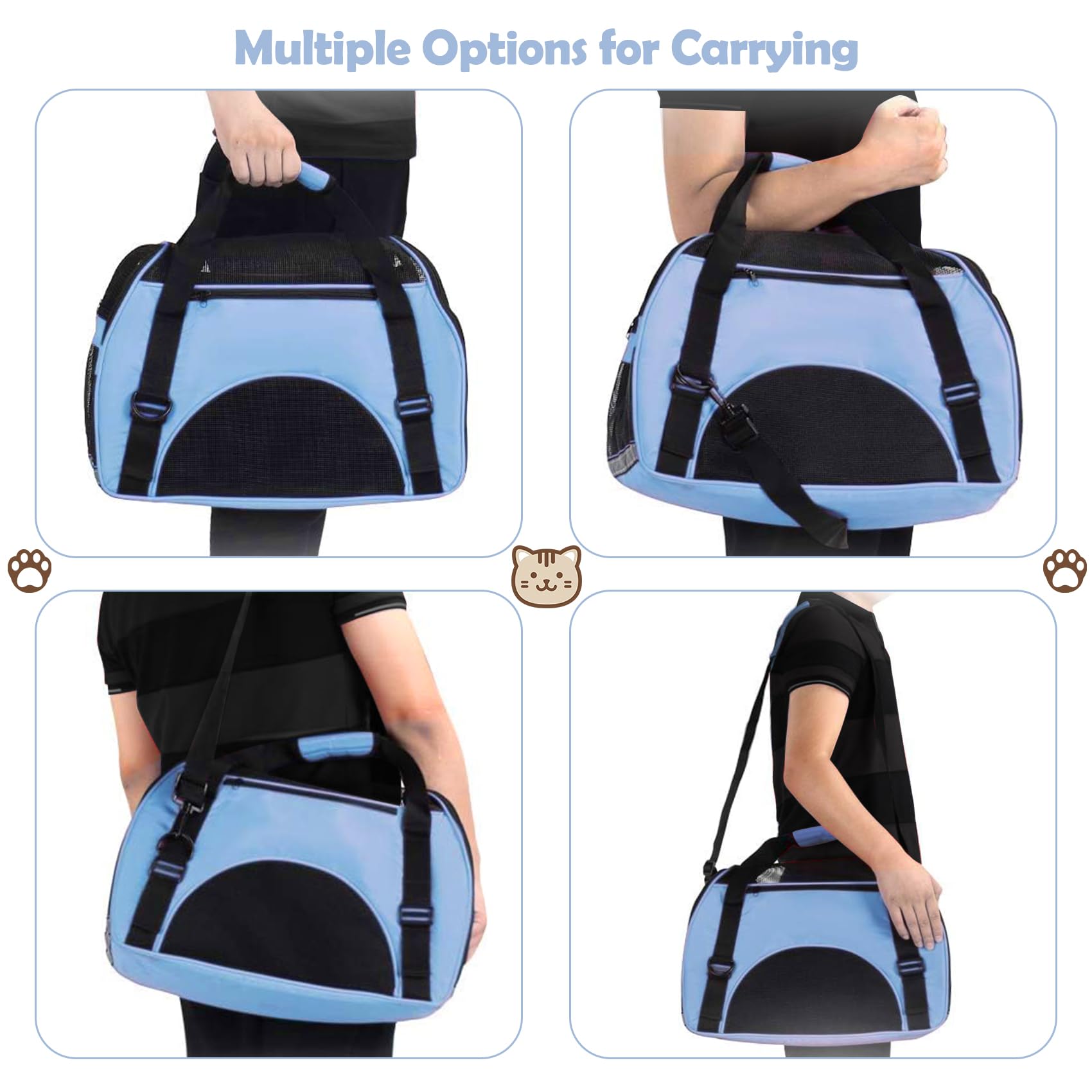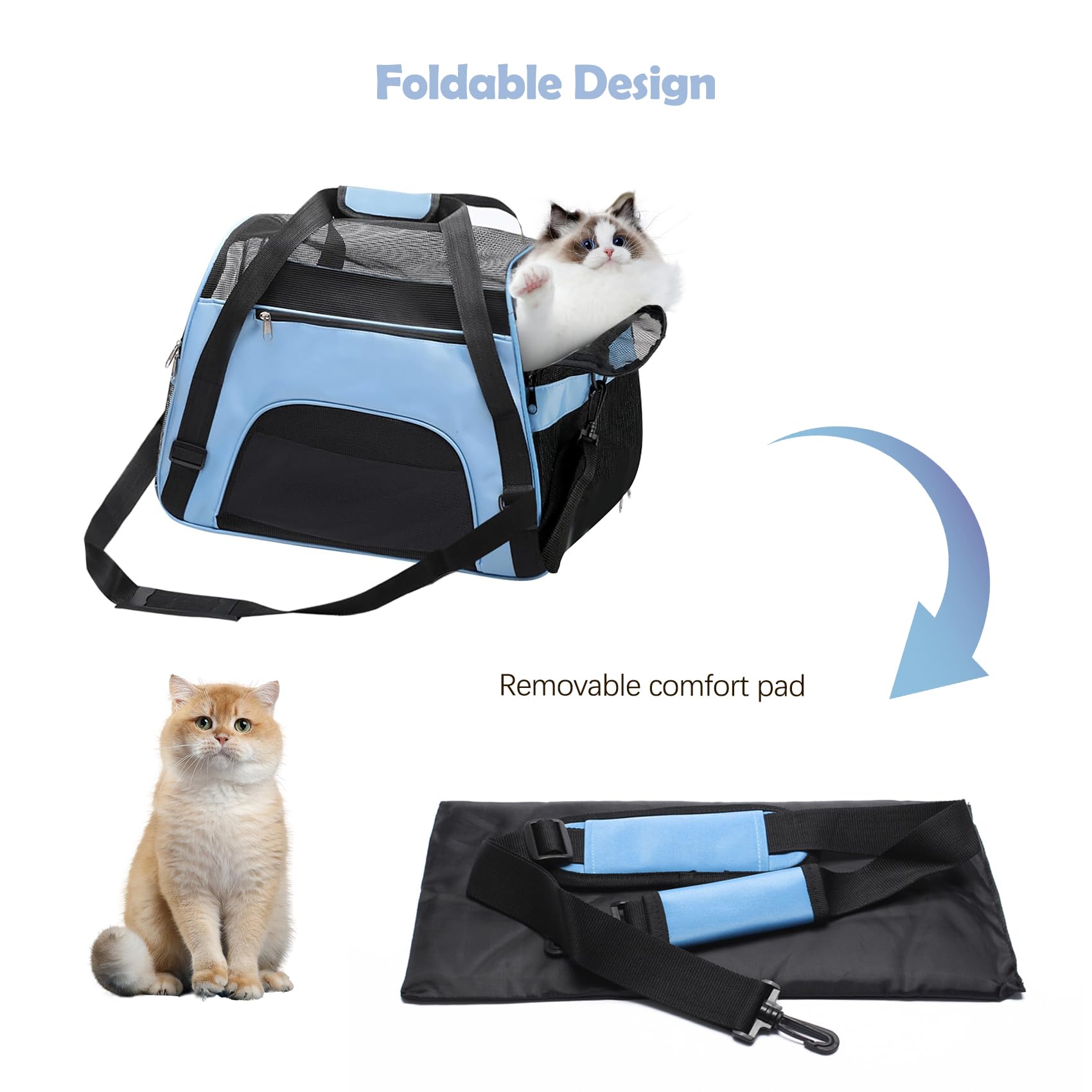 Cat Carrier, Portable Pet Carrier Foldable Soft Sided Cat Travel Carrier Airline Approved Cat Carrier bag Breathable with Mesh Top and Sides 43x20x28cm, Blue