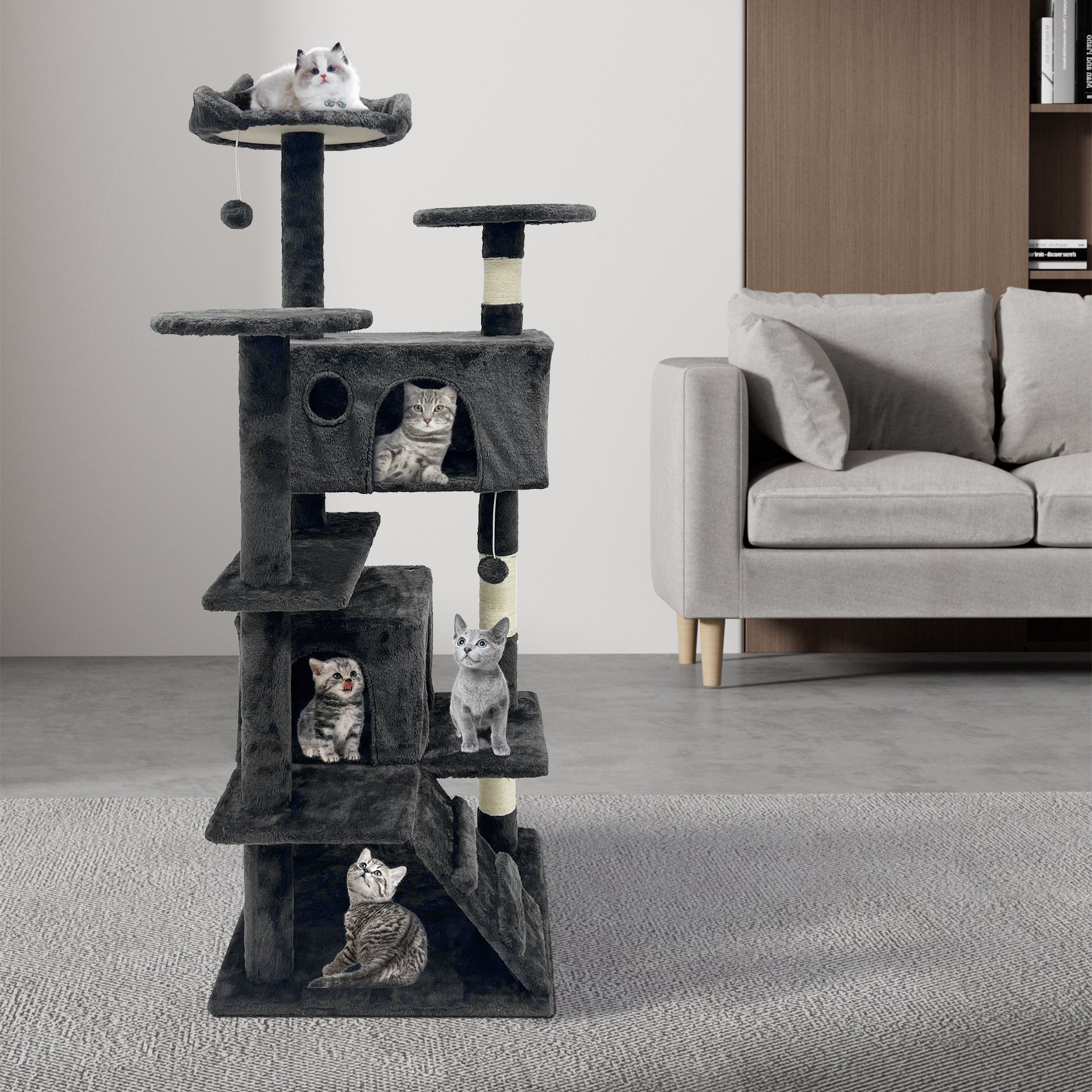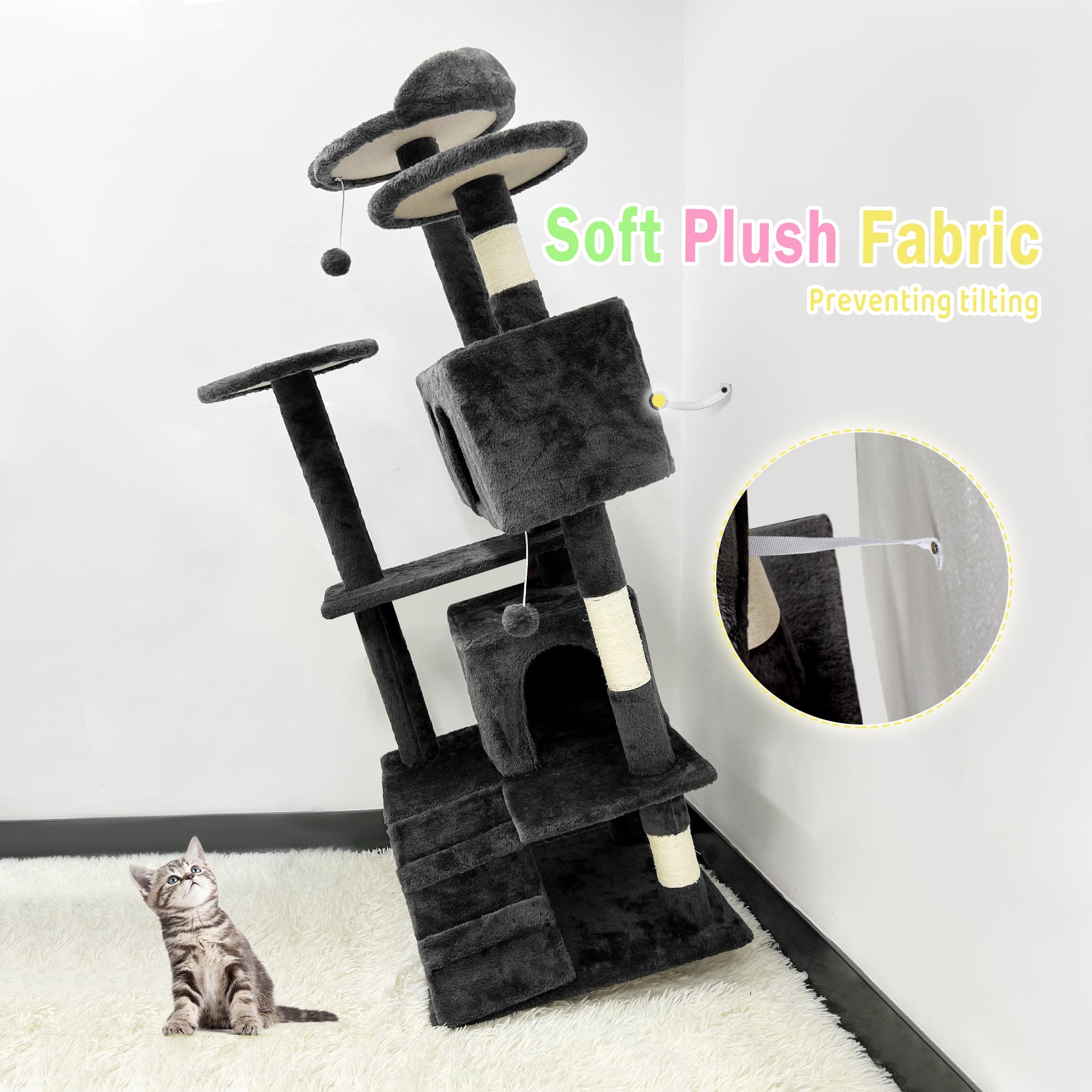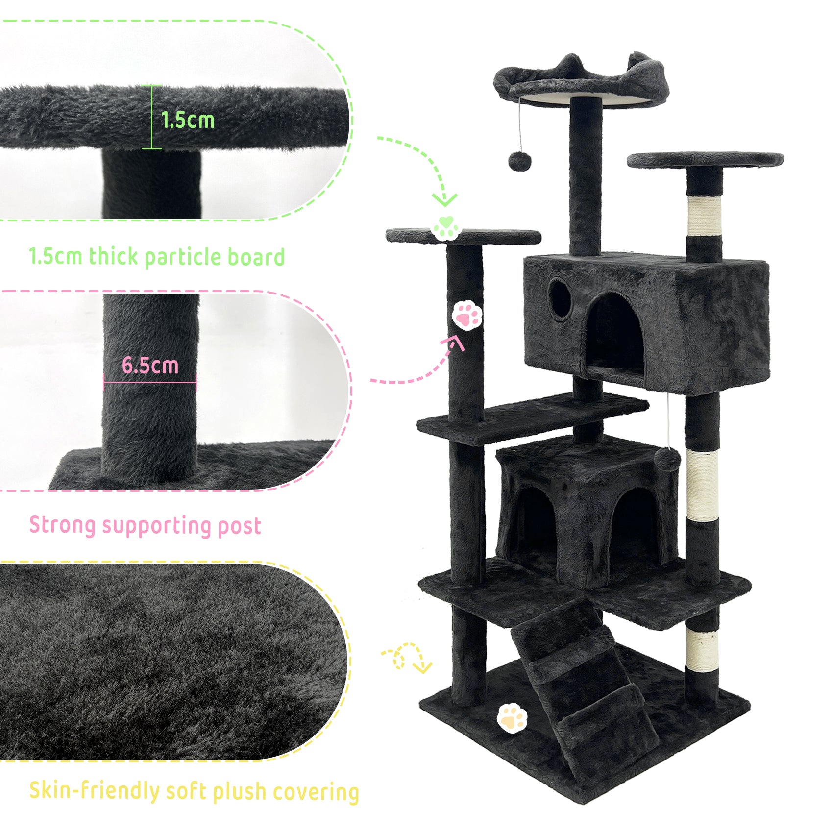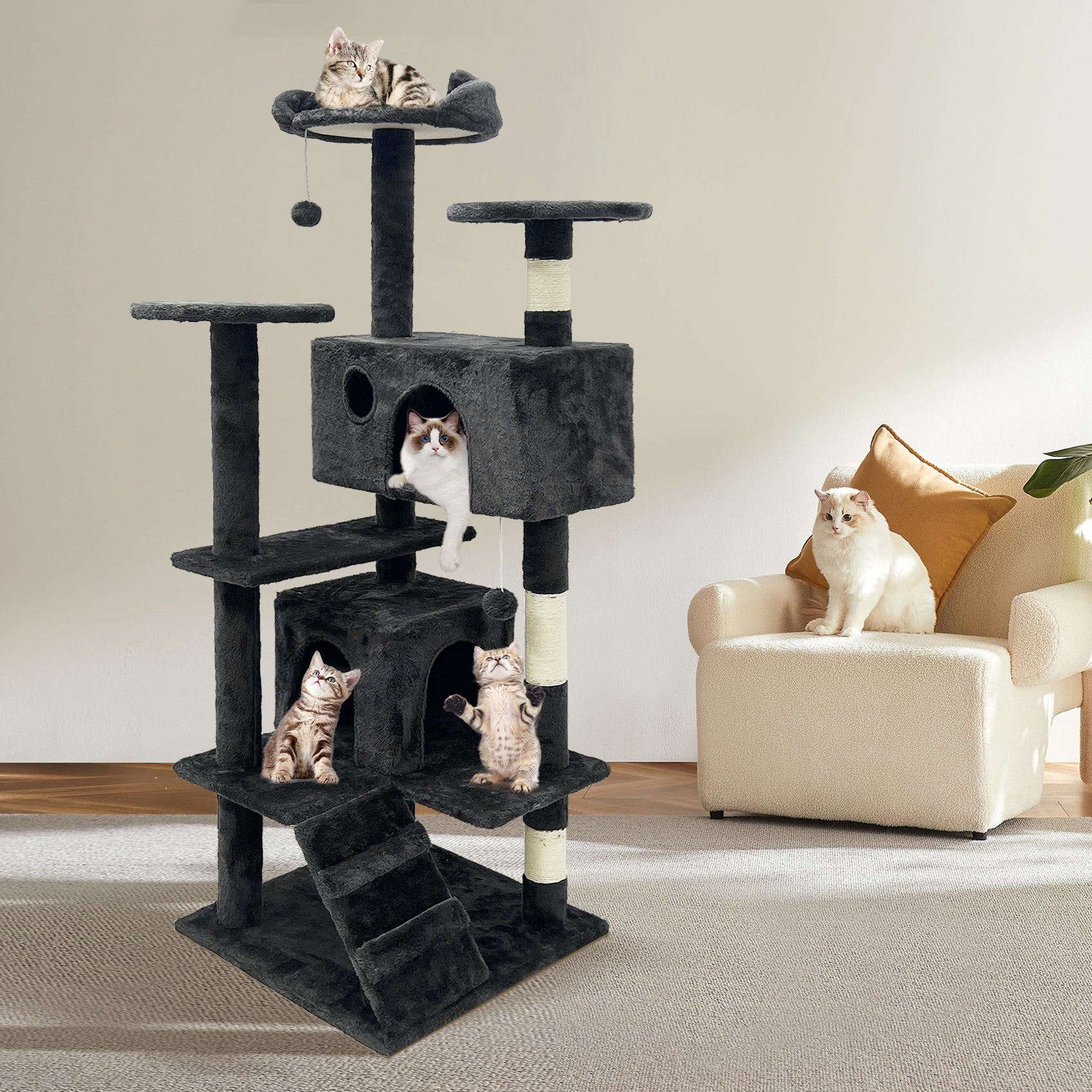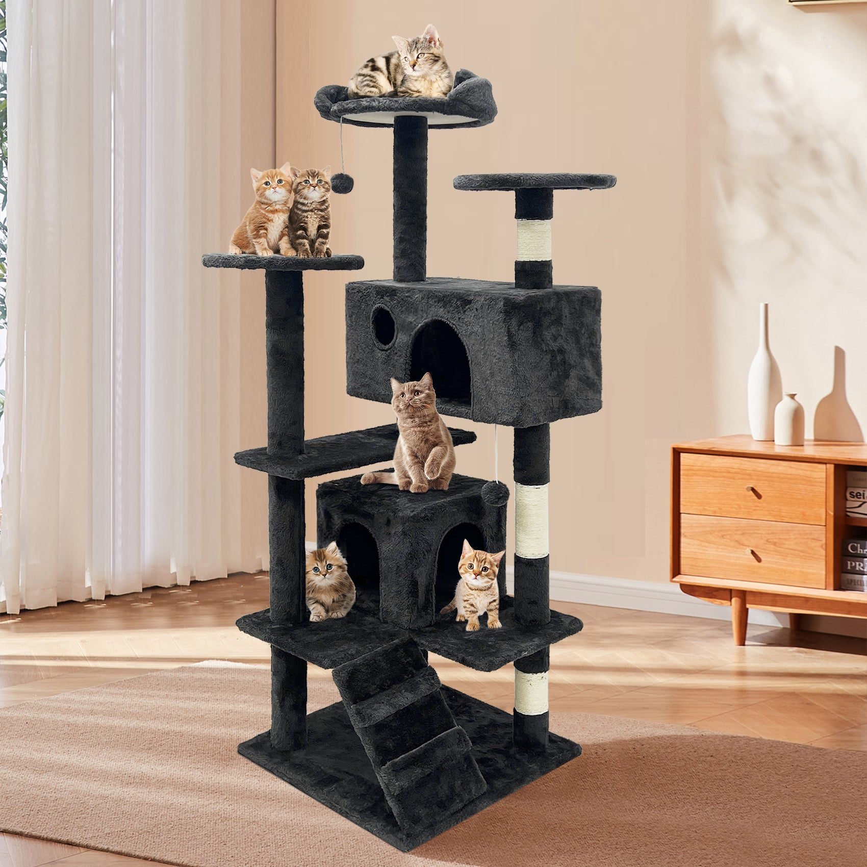 4. Scratch-friendly: Reinfoced posts wrapped with natural sisal rope