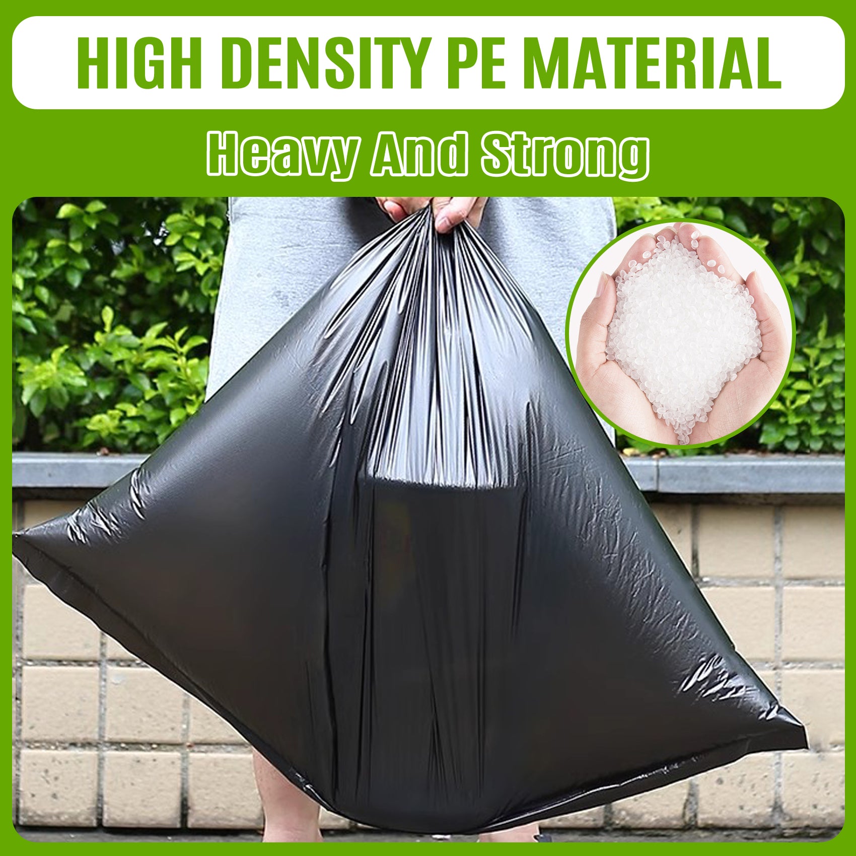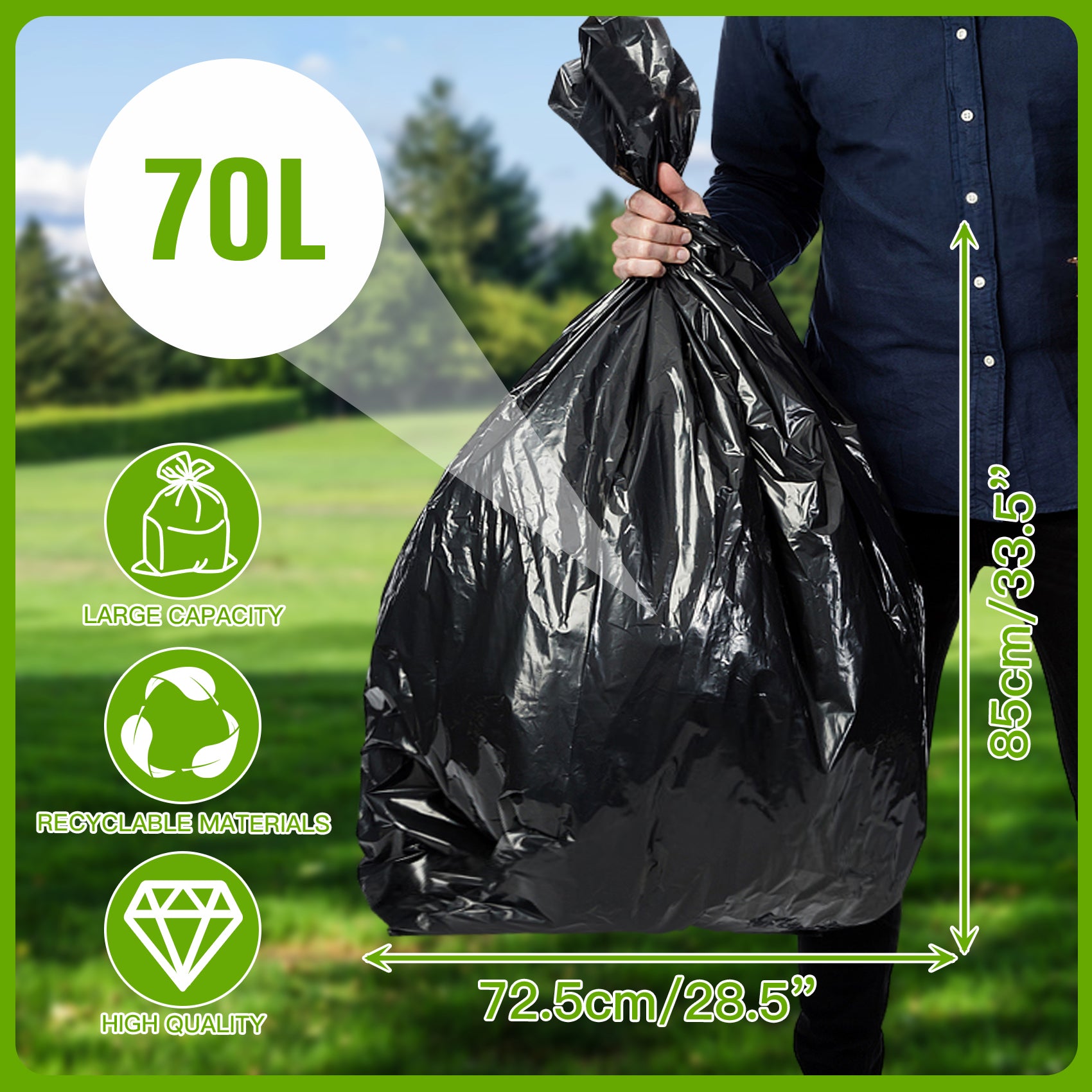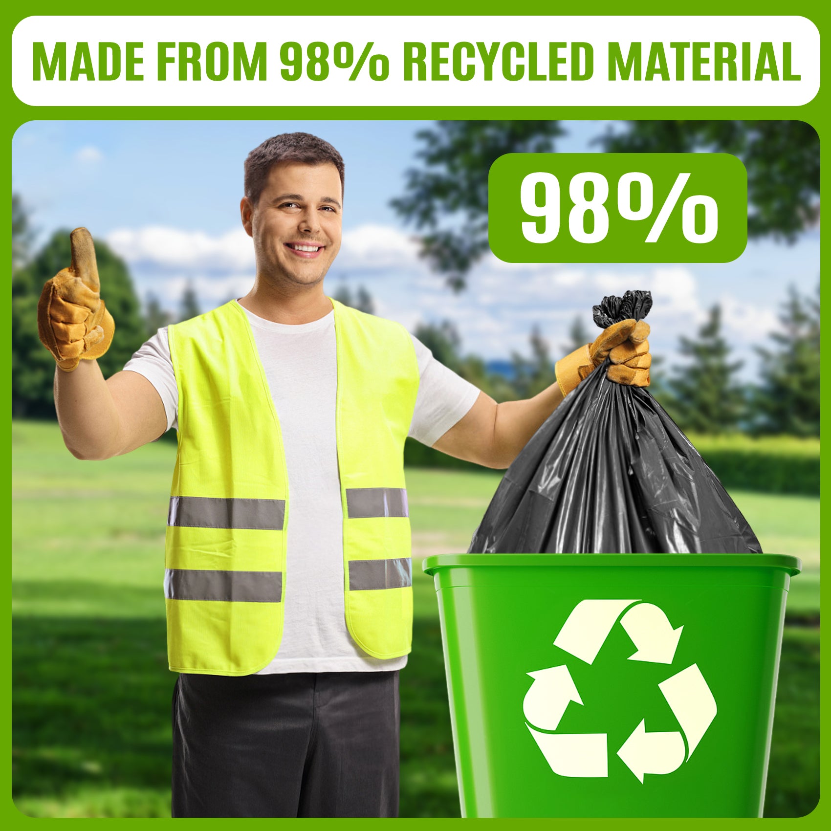 - Premium Quality: Our 100 litre garbage bags are crafted from a minimum of 98% recycled plastic, making them an environmentally conscious choice. The 25-micron thickness ensures durability and strength, capable of handling heavy and bulky waste without tearing or puncturing