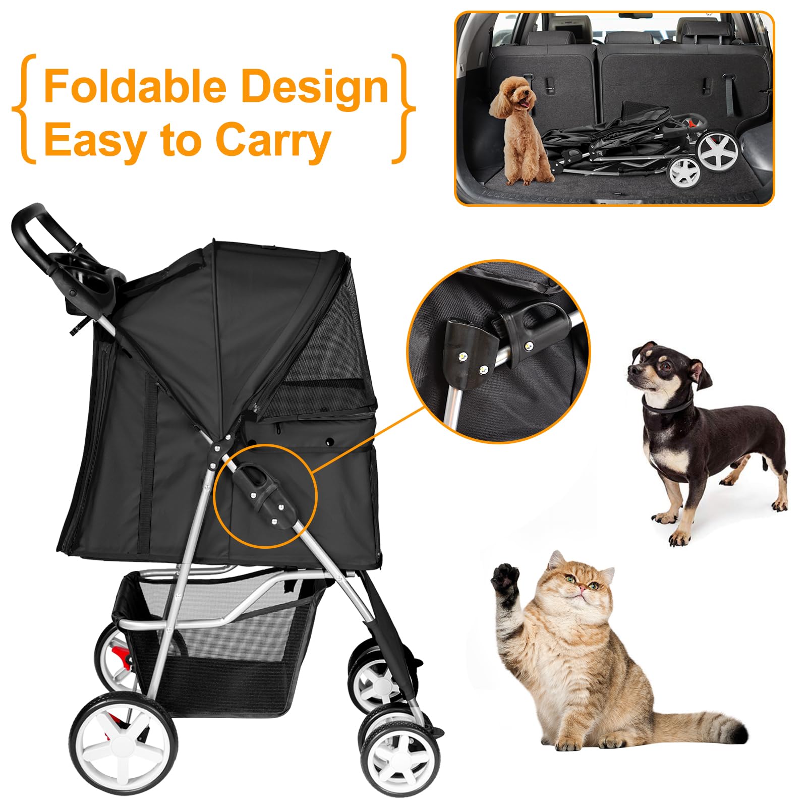 - [Easy to assemble and foldable] - The pet stroller easy to setup in few minutes with the install manual.Easy to fold to make for simple storage, you can put it in car trunk.Our cat stroller collapsible design makes it ideal for travel and camping.