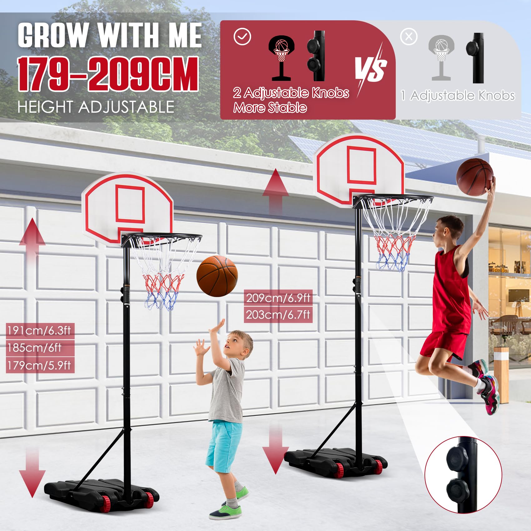 Portable Basketball Hoop System Adjustable Height 179-209cm on Wheels, 28 Inch Backboard, Basketball Goals Indoor/Outdoor