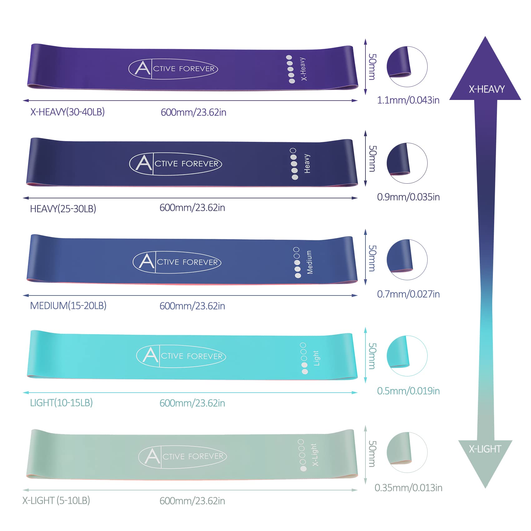 - 【5 Different Levels】: This resistance band set includes 5 levels in 5 colors, including X Light, Light, Medium, Heavy, and X Heavy. 1 piece of each color, 5 pieces in total. Refer to the images and descriptions for more information.