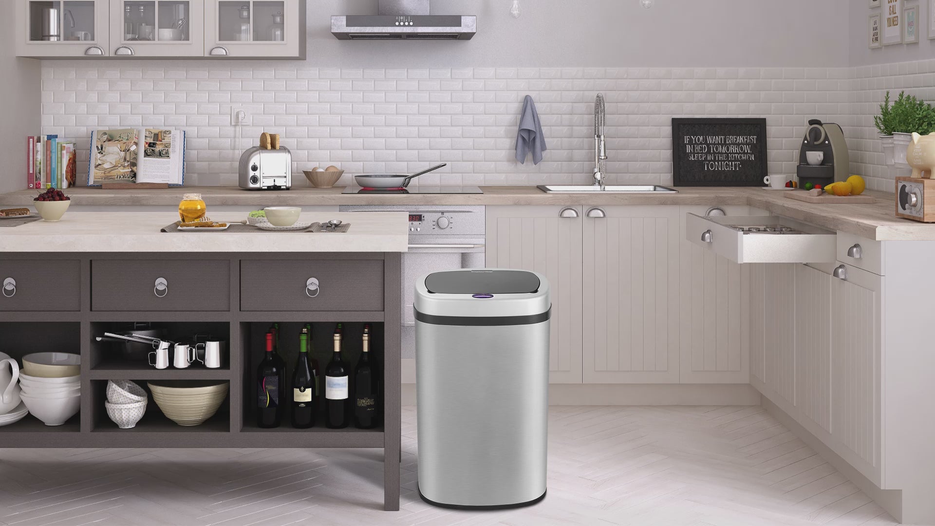 Stainless Steel Automatic Touchless Kitchen Bathroom Sensor Bin,Trash Can,Touch Bin (58LRound)