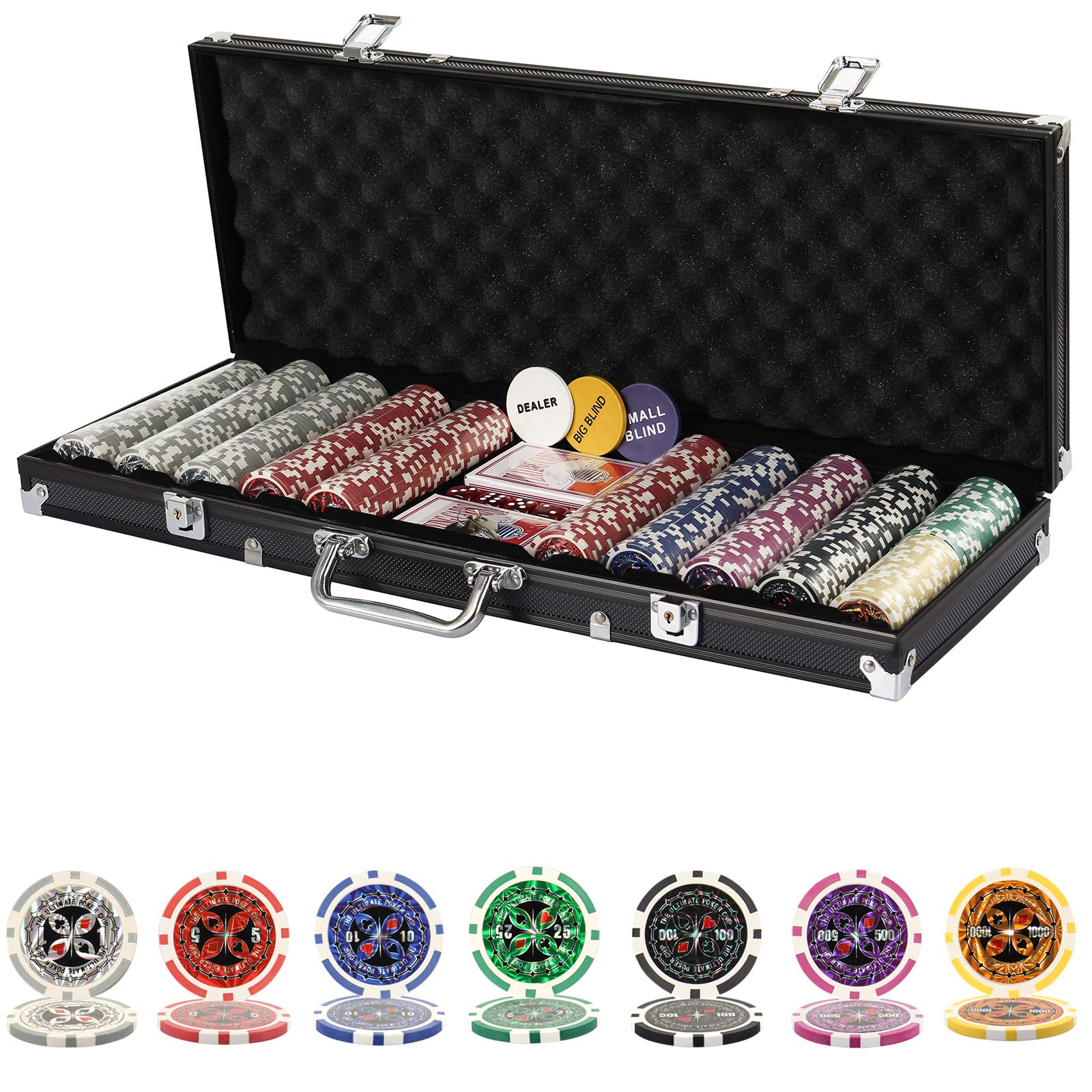 Texas Holdem Poker Chips Set with Aluminum Case,2 Decks of Cards, Dealer, Small Blind, Big Blind Buttons and 5 Dice (500 Piece Chips)
